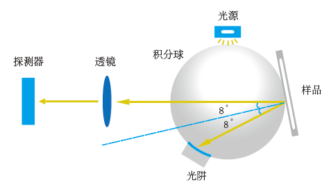 1、 仪器采用国际通用的D/8(积分球漫射照明,8°观察角)SCI/SCE兼容照明观察条件